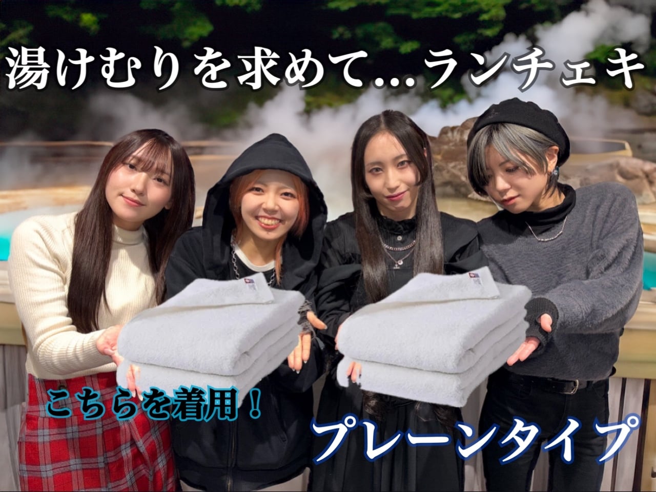 バスタオルなどに身を包まれて湯に浸かったり、湯けむり風情のある始発待ちアンダーグラウンドのランチェキです!